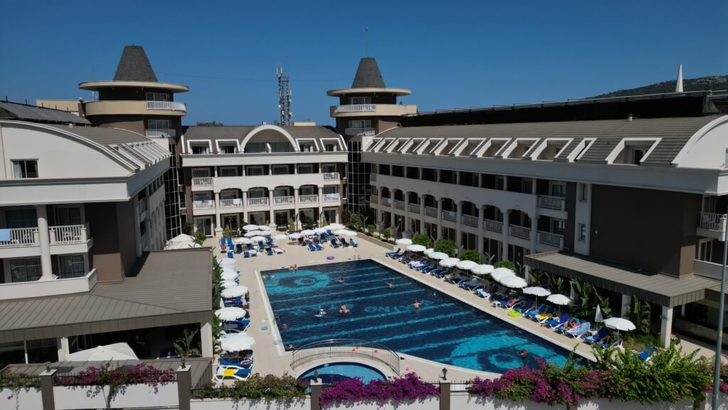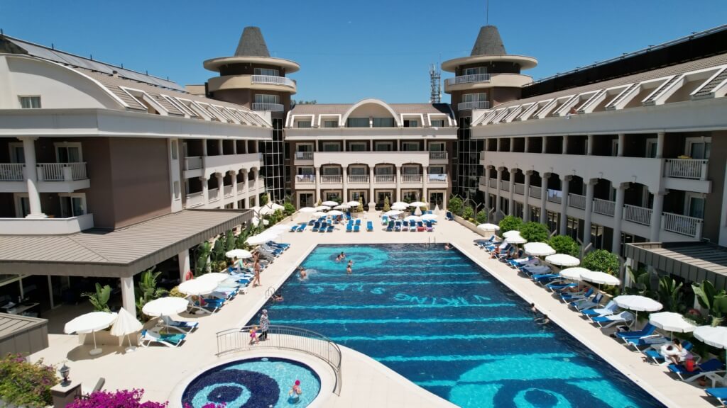 Toros Dağları’nın Akdeniz’in Turkuaz rengi ile birleştiği Kemer merkezde; tatilde ihtiyacınız olan her türlü hizmeti gerçek kalitesi ile sunmayı hedefleyen; eşsiz güneşi ve plajı ile birlikte yeşile bezenmiş muhteşem dağ manzarası ile "HER ŞEY DAHİL" otelimiz, siz değerli misafirlerini beklemektedir.
